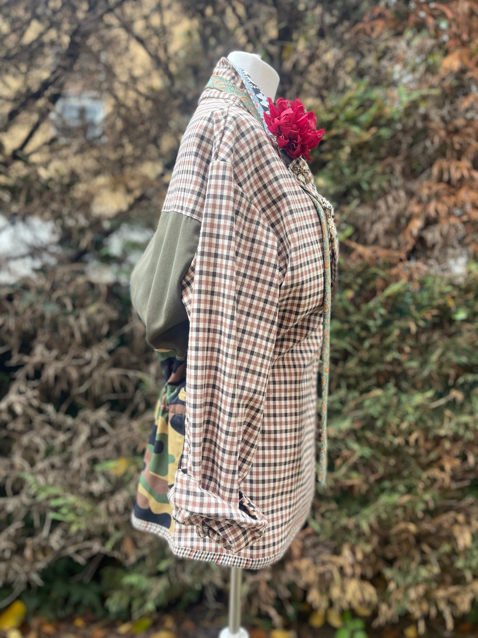 Questo Blazer Diamante è un pezzo unico realizzato con tessuti di alta qualità provenienti da una giacca militare italiana, perfetto per gli amanti della moda sostenibile. Le spille gioiello nel revers aggiungono un tocco di eleganza e originalità. Con il nostro Blazer Diamante non solo avrai uno stile unico, ma contribuirai anche alla lotta contro lo spreco di tessuti.