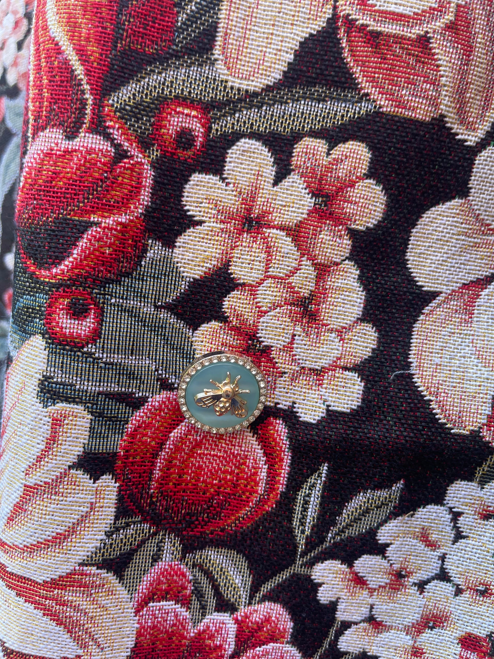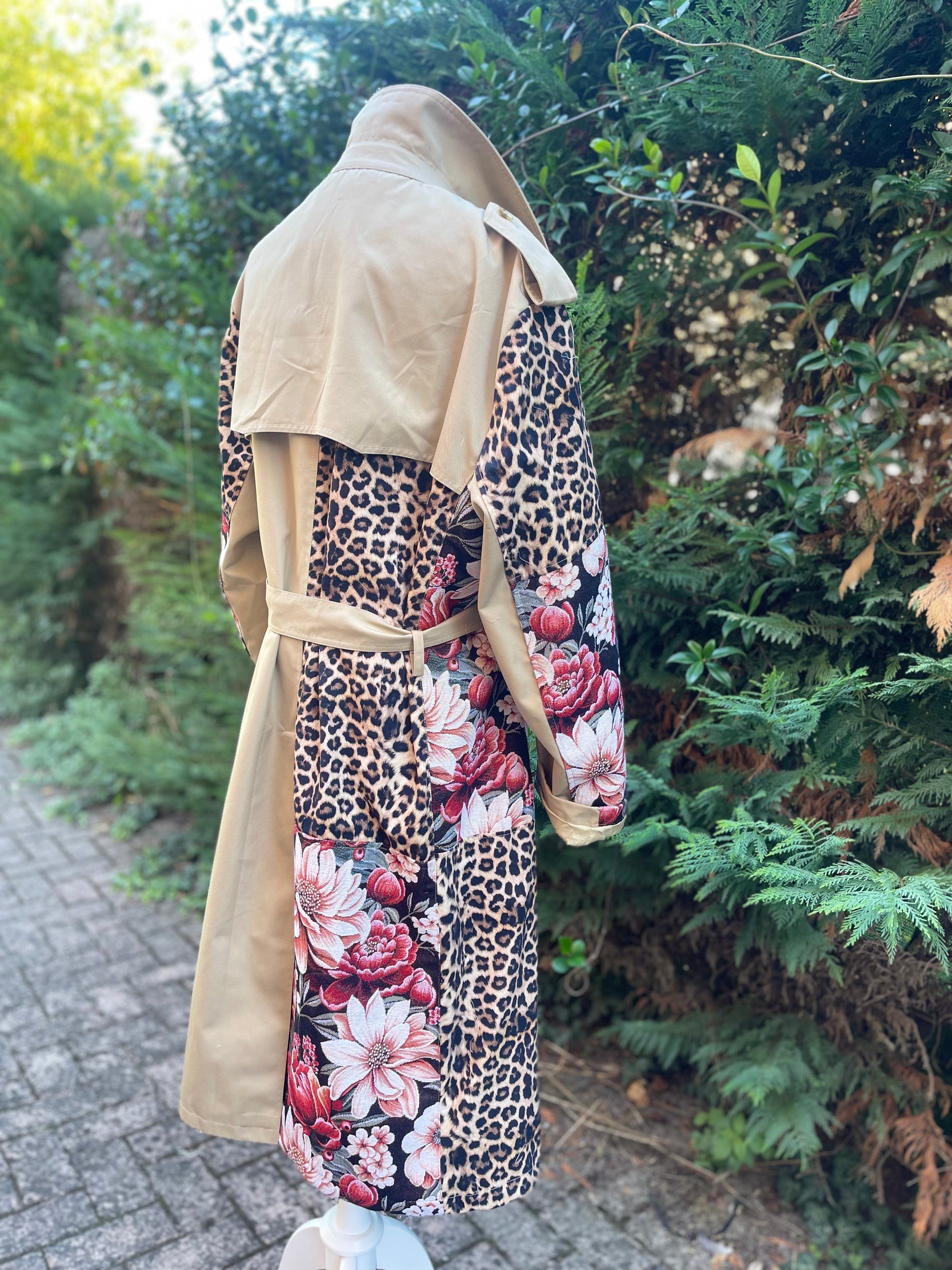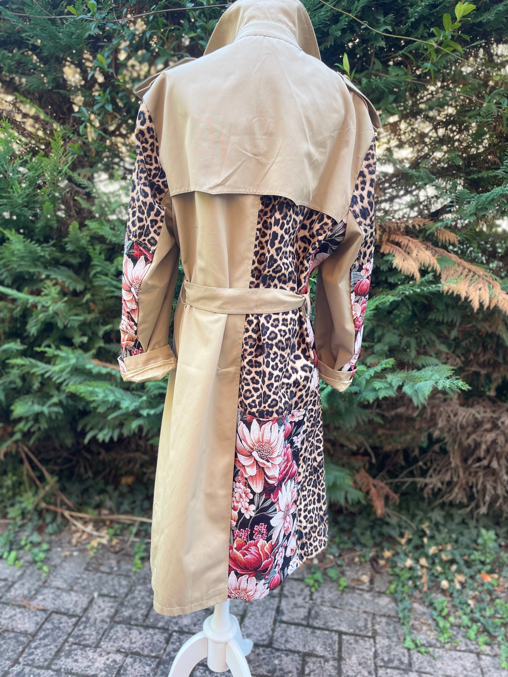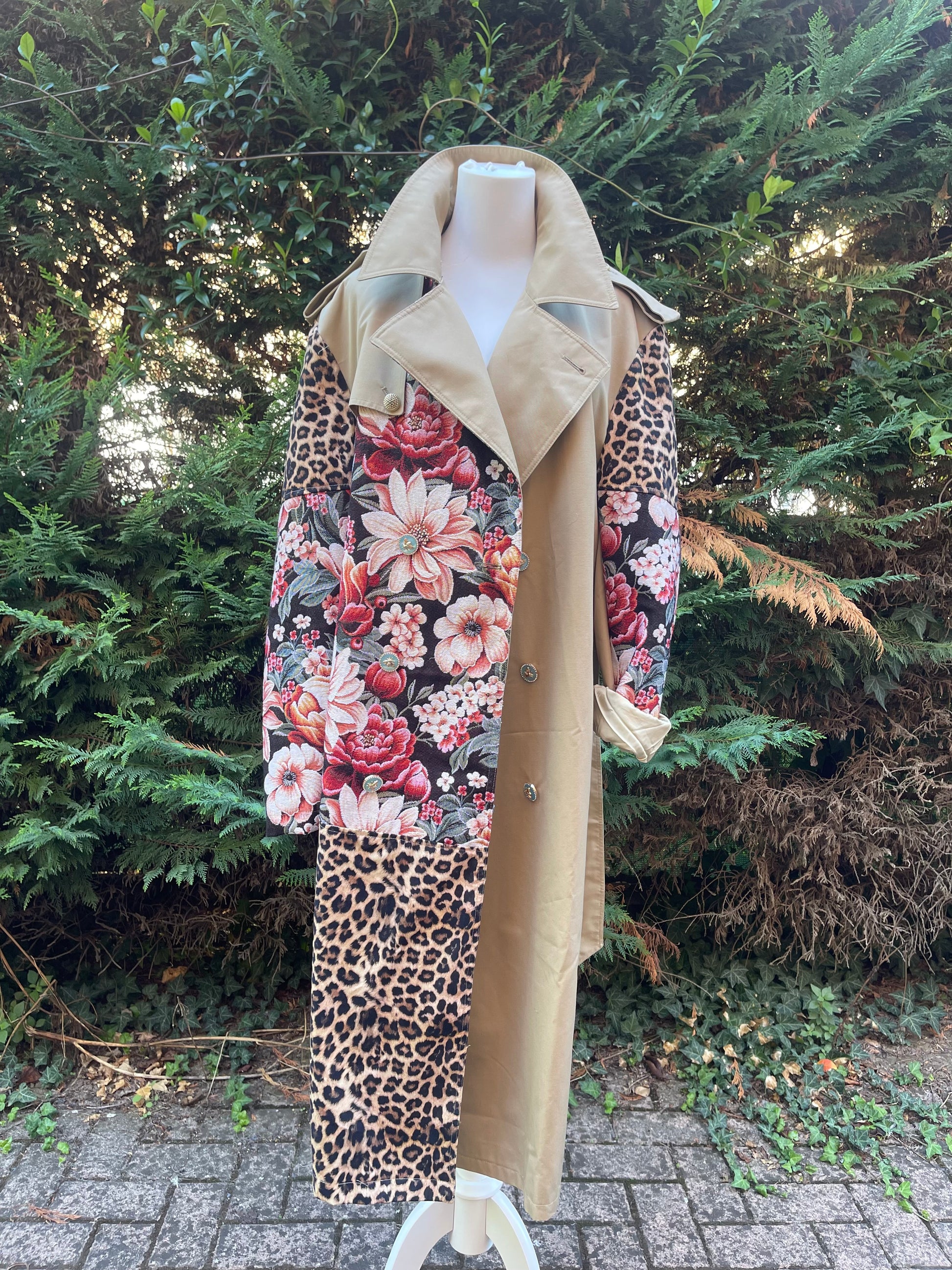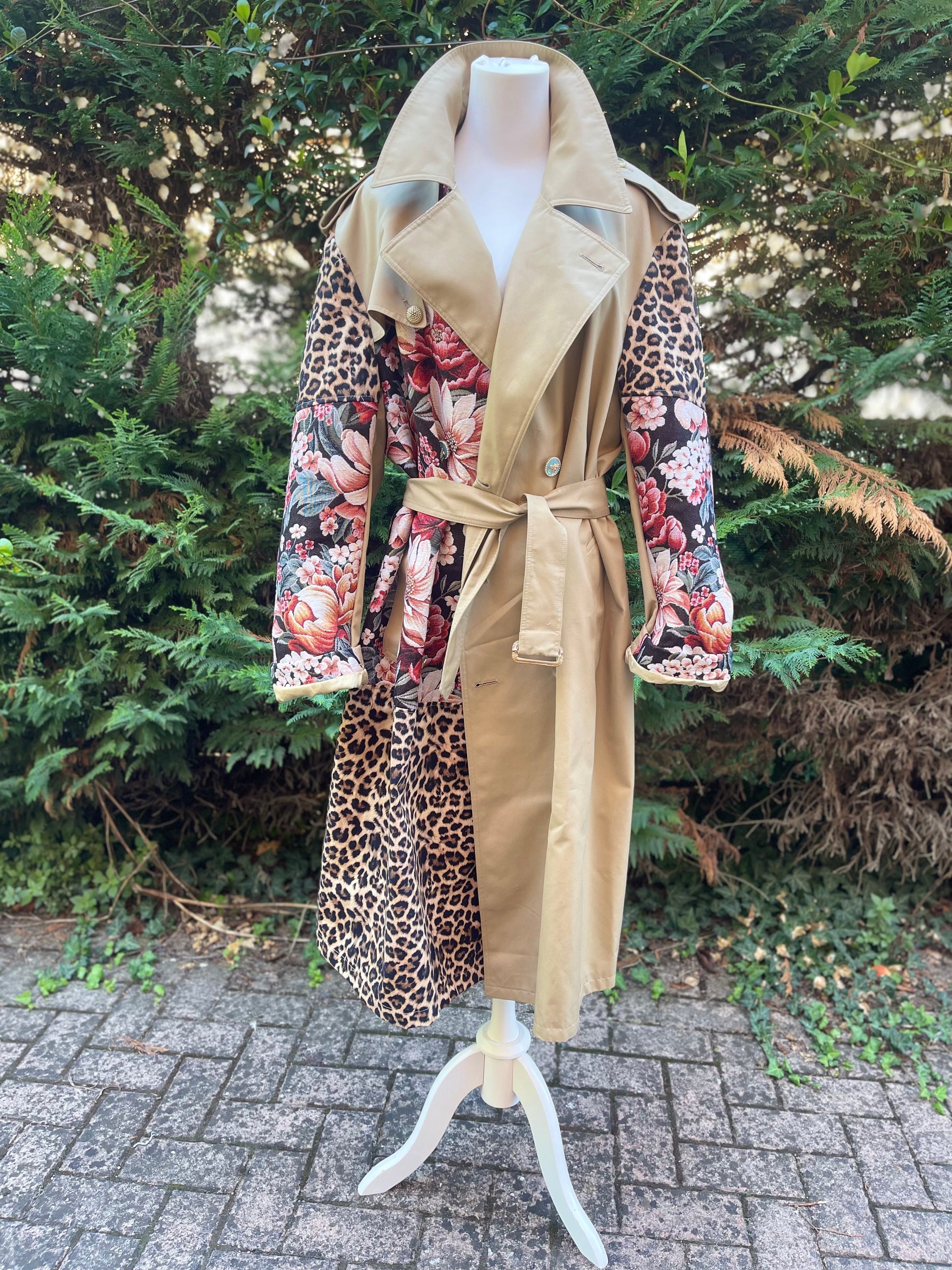 Il trench beth è un capo di tendenza sostenibile e di alta qualità, realizzato con materiali riciclati e mixato con tessuti vintage come gobelin a fiori e cotone maculato. Coniuga stile e sostenibilità per un look unico e di tendenza.